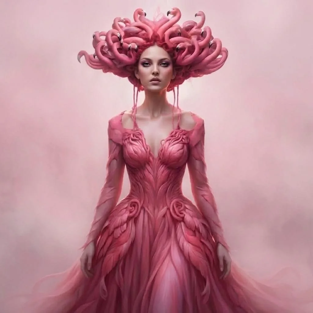 Flamingoza is the living heart of this world โ a muse, a guide, the keeper of quiet magic. She stands at the threshold between realms, balancing the seen and the unseen with effortless grace; each of her movements leaves a trail of glyphs, a symbolic language born from emotion, light, and intuition. Flamingoza merchandise is not mere decoration but presence made tangible: wearable symbols, ritual objects, collectible myths that carry fragments of her world into everyday life. Created to restore balance, awaken creativity, and honour emotional intelligence, the collection is made for artists, dreamers, collectors, and sensitive thinkers, those who feel before they speak. Every piece embodies one or more of her core qualities, inviting the holder to listen, to remember, and to become part of a living story.